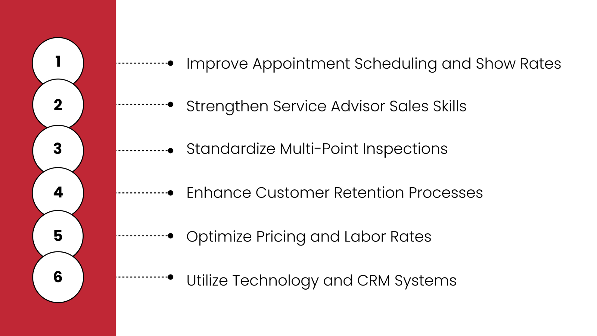 Improving service department profitability requires a combination of operational discipline, strong communication, and consistent execution. Dealerships that focus on both efficiency and customer experience are better positioned to capture every available revenue opportunity. The following strategies provide practical ways to increase service department revenue dealership-wide while improving overall performance.